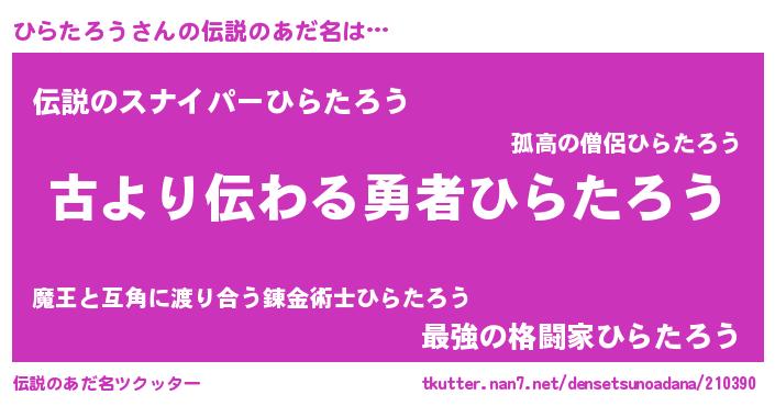 | 男性向けラノベタイトル風あだ名 | 『ひらたろうという概念が存在しない退屈な世界 』 |