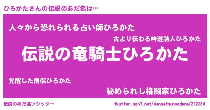 | ヒーロー風カッコイイあだ名 | 『スーパーヒロカタ』『仮面ヒロダー』 |
