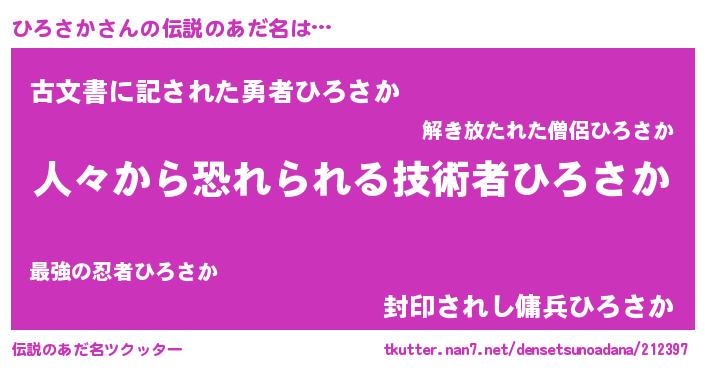 | ヒーロー風カッコイイあだ名 | 『友情の使者ひろさか』『仮面ヒロダー』 |