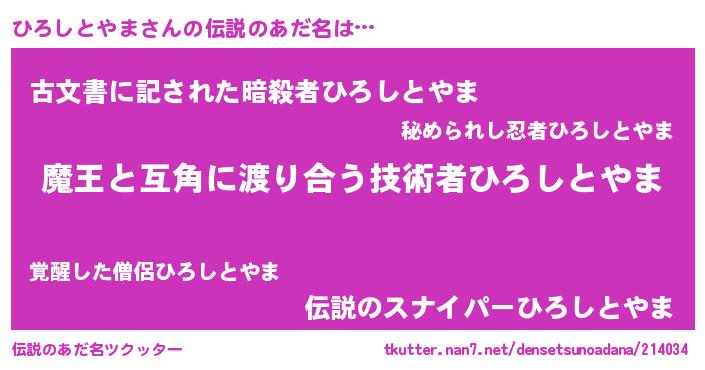 | ヒーロー風カッコイイあだ名 | 『愛の使者ひろしとやま』『仮面ヒロダー』 |