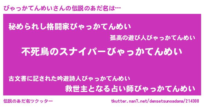 | 意味不明あだ名 | 『住所不定無職びゃっかてんめい(91歳)』 |