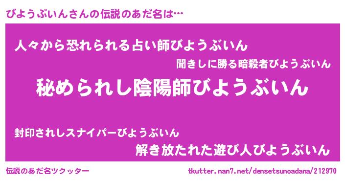 | ファンタジー風あだ名 | 『エターナルビヨウブインー』 |
