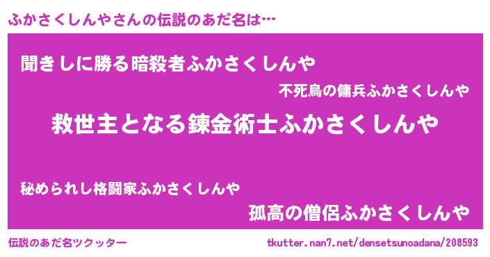| 男性向けラノベタイトル風あだ名 | 『この素晴らしい世界にふかさくしんやを!』 |