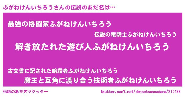 | 男性向けラノベタイトル風あだ名 | 『ダンジョンにふがねけんいちろうを求めるのは間違っているだろうか』 |