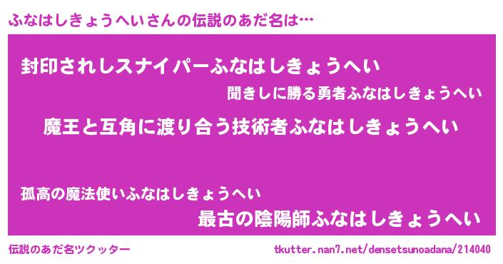 | 意味不明あだ名 | 『自称ふなはしきょうへい』 |