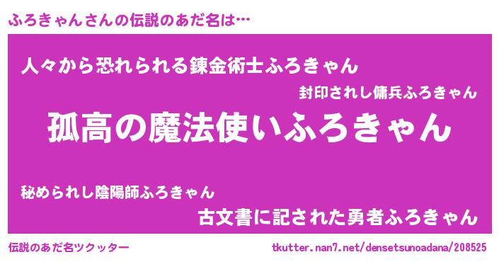 | 男性向けラノベタイトル風あだ名 | 『ダンジョンにふろきゃんを求めるのは間違っているだろうか』 |