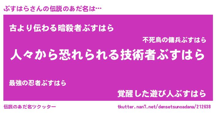 | ヒーロー風カッコイイあだ名 | 『正義の使者ぶすはら』『ネオブスハラ』 |