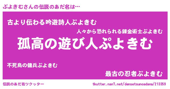 | ポケモン風あだ名 | 『プヨゴンZ』『ヒプヨキム』 |