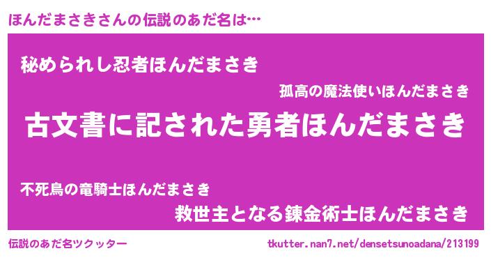 | 男性向けラノベタイトル風あだ名 | 『Re:ほんだまさきから始める異世界生活』 |