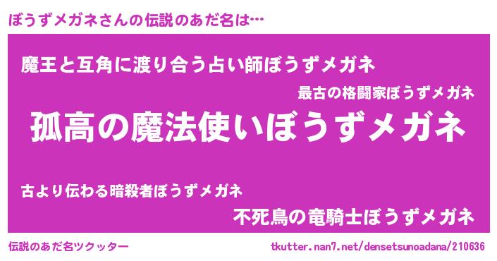 | 意味不明あだ名 | 『自称ぼうずメガネ』 |