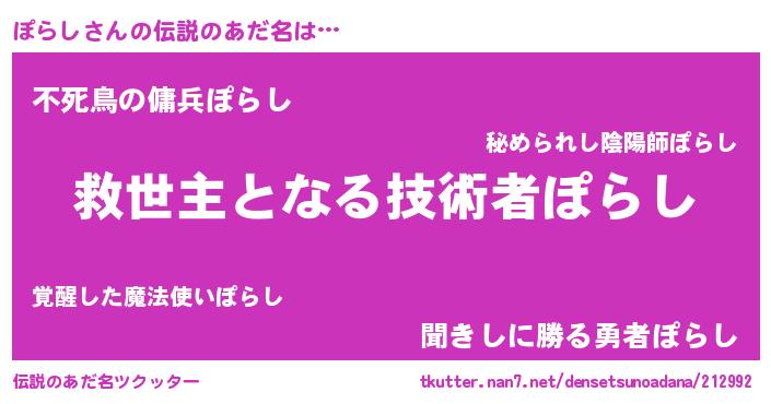 | ヒーロー風カッコイイあだ名 | 『天空の使者ぽらし』『スーパーポラシ』 |