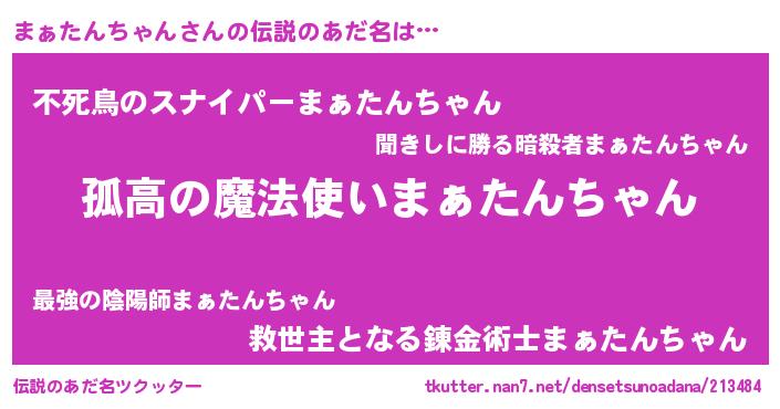 | 男性向けラノベタイトル風あだ名 | 『マァタンチャンスレイヤー』 |