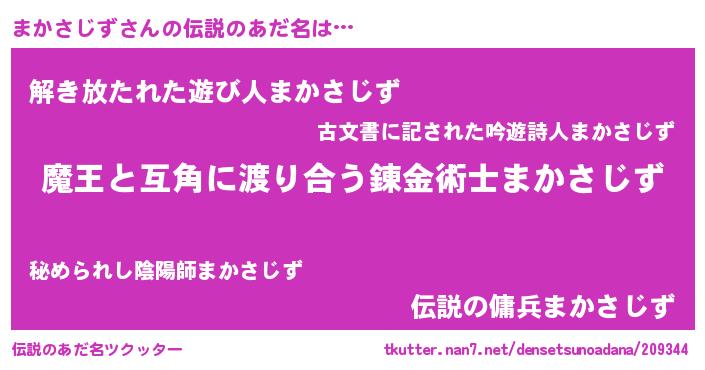 | 男性向けラノベタイトル風あだ名 | 『転生したらまかさじずだった件』 |