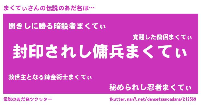 | ヘコむあだ名 | 『まくにゅー』『まくてぃ(笑)』 |