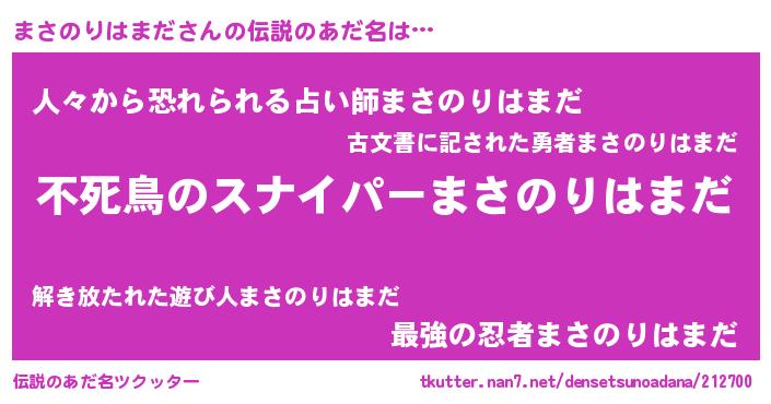 | 胡散臭い通販商品みたいなあだ名 | 『モテモテ間違いなし霊験あらたかなお札…その名も「まさのりはまだ」』 |