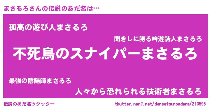 | 意味不明あだ名 | 『ペロリンまさるろ』『自称まさるろ』 |