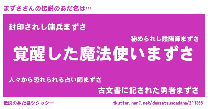 | 男性向けラノベタイトル風あだ名 | 『まずさの嫁は女の子じゃないと思った?』 |