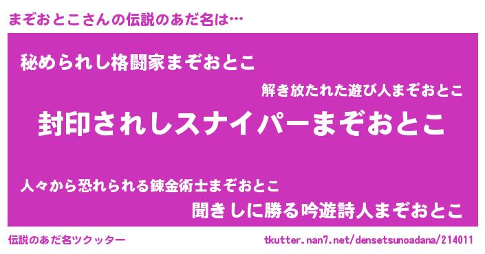 | 胡散臭い通販商品みたいなあだ名 | 『億万長者になれる霊験あらたかなお札…その名も「まぞおとこ」』 |