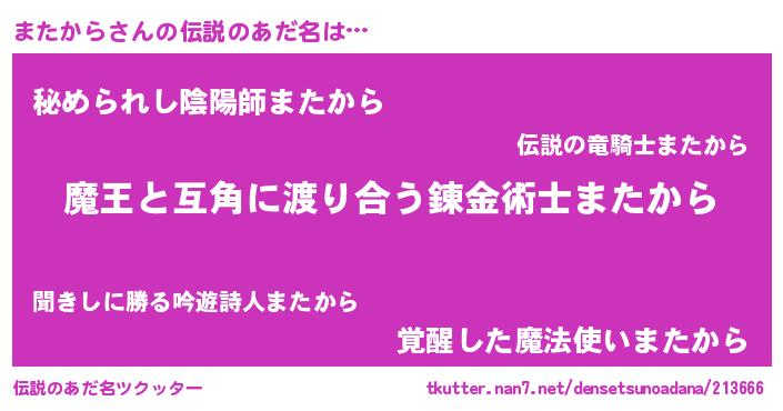 | ヒーロー風カッコイイあだ名 | 『仮面マタダー』『友情の使者またから』 |