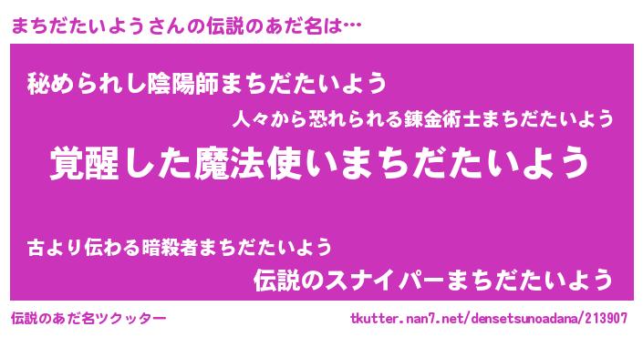 | 男性向けラノベタイトル風あだ名 | 『まちだたいようの嫁は女の子じゃないと思った?』 |