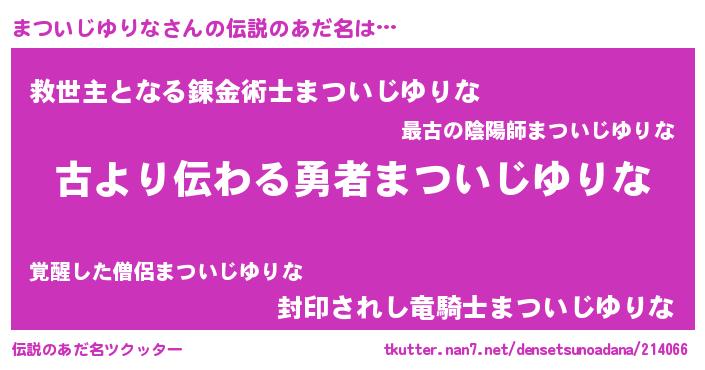 | 胡散臭い通販商品みたいなあだ名 | 『来世でも幸せになれる水素水…その名も「まついじゆりな」』 |
