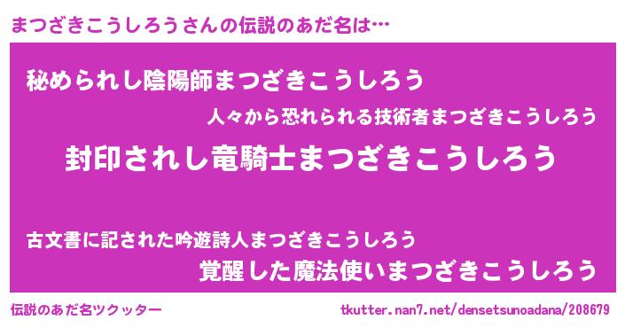 | ヒーロー風カッコイイあだ名 | 『スーパーマツザキコウシロウ』 |