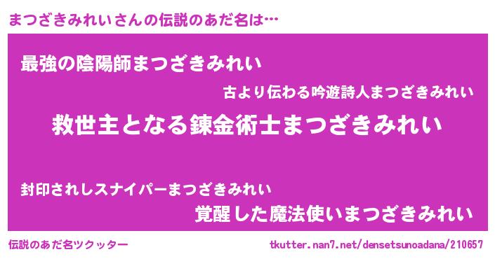 | 胡散臭い通販商品みたいなあだ名 | 『モンドセレクションを受賞した隕石のかけら…その名も「まつざきみれい」』 |