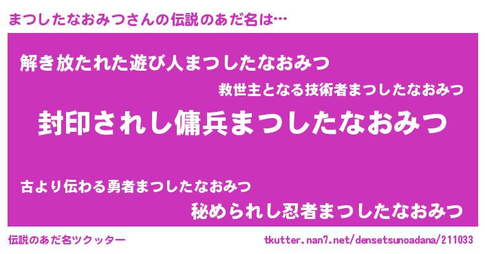 | 胡散臭い通販商品みたいなあだ名 | 『億万長者になれる水晶球…その名も「まつしたなおみつ」』 |