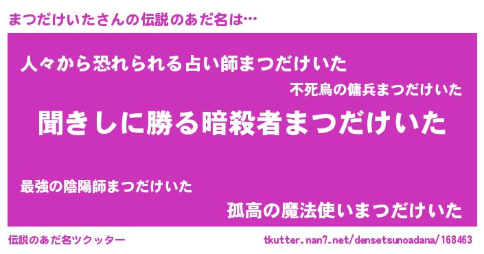 | ヘコむあだ名 | 『まつだけいた(笑)』『まつっ子』 |