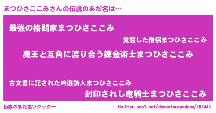 | 男性向けラノベタイトル風あだ名 | 『この素晴らしい世界にまつひさここみを!』 |