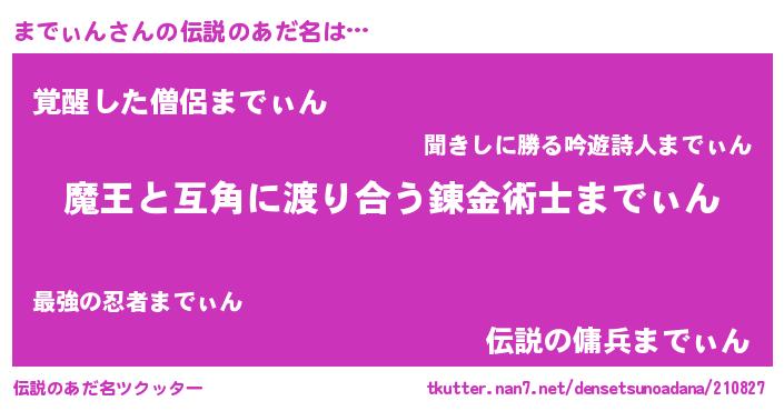 | 女子向けラノベタイトル風あだ名 | 『闇のまでぃん』『死神までぃんの再婚』 |