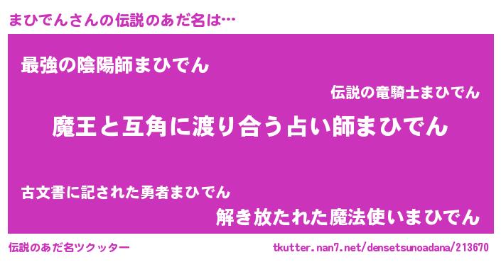| ヒーロー風カッコイイあだ名 | 『仮面マヒダー』『天空の使者まひでん』 |