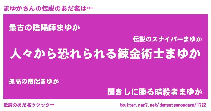 | ヒーロー風カッコイイあだ名 | 『正義の使者まゆか』『超時空戦士マユカ』 |