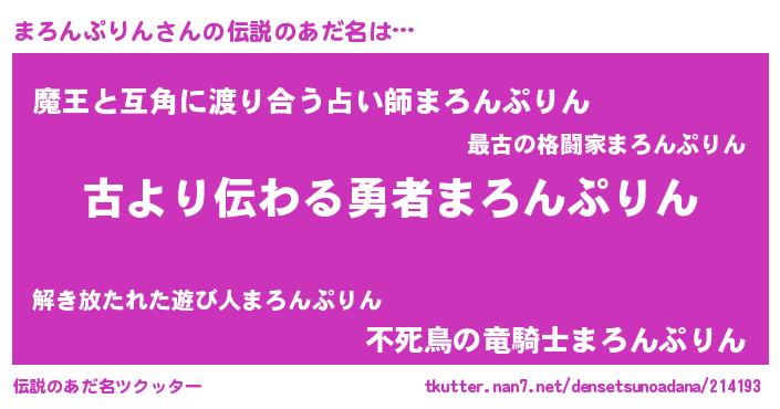 | 男性向けラノベタイトル風あだ名 | 『まろんぷりんという概念が存在しない退屈な世界 』 |