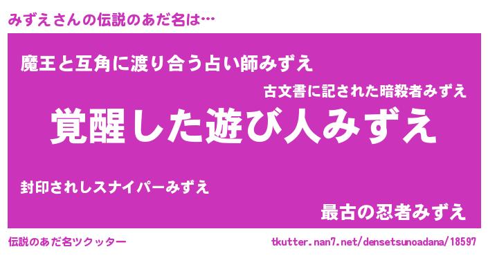 | 意味不明あだ名 | 『とにかく怪しいみずえ』『自称みずえ』 |