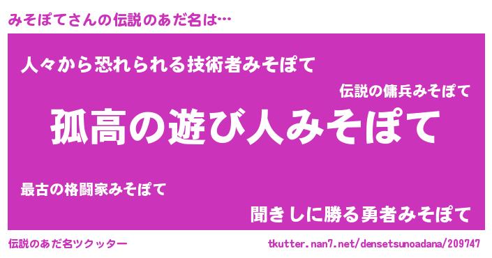 | 女子向けラノベタイトル風あだ名 | 『みそぽては平凡を望む』 |