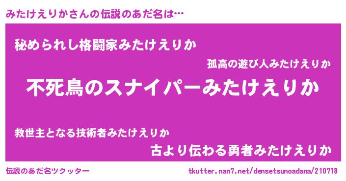 | ヒーロー風カッコイイあだ名 | 『スーパーミタケエリカ』『仮面ミタダー』 |