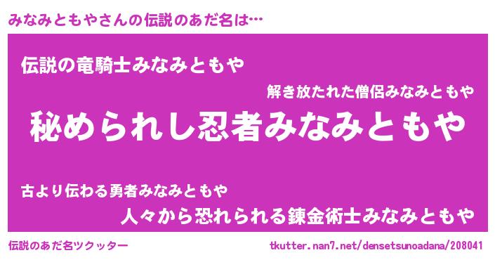 | 意味不明あだ名 | 『自称みなみともや』 |