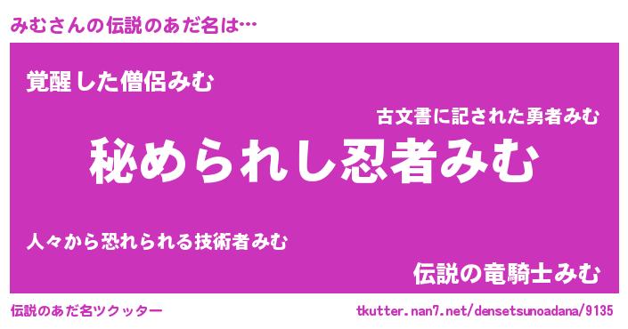 | ヒーロー風カッコイイあだ名 | 『ウルトラみむマン』『仮面ミムダー』 |