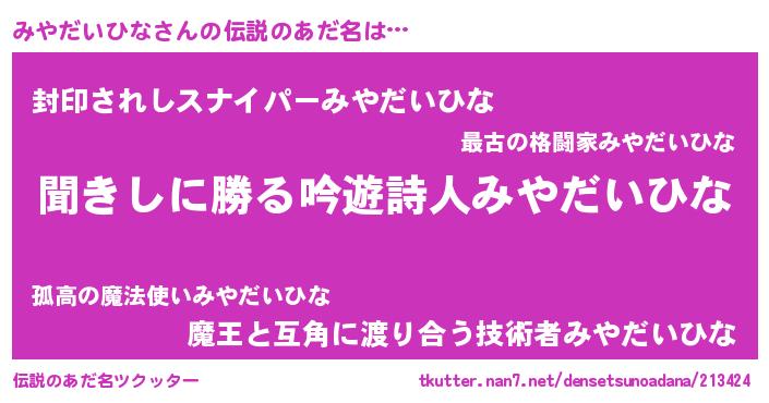 | ヘコむあだ名 | 『みやだいひな(笑)』『みやっふぃ~』 |