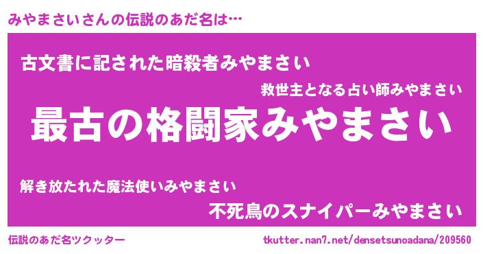 | ファンタジー風あだ名 | 『エターナルミヤマサイー』 |