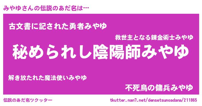 | ファンタジー風あだ名 | 『エターナルミヤユー』『ゼミヤトゥ』 |