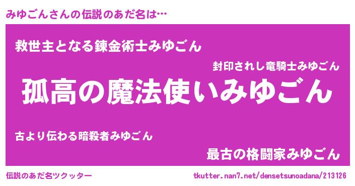 | 女子向けラノベタイトル風あだ名 | 『みゆごんなんてお断りですっ。』 |
