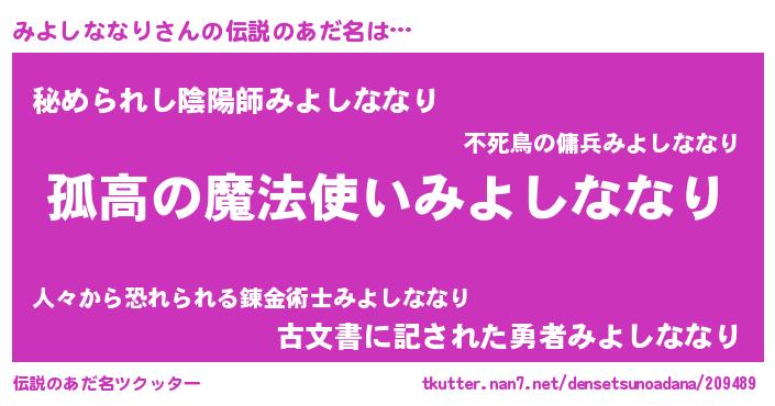 | 意味不明あだ名 | 『とにかく怪しいみよしななり』 |