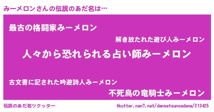 | ヒーロー風カッコイイあだ名 | 『正義の使者みーメロン』『仮面ミーダー』 |