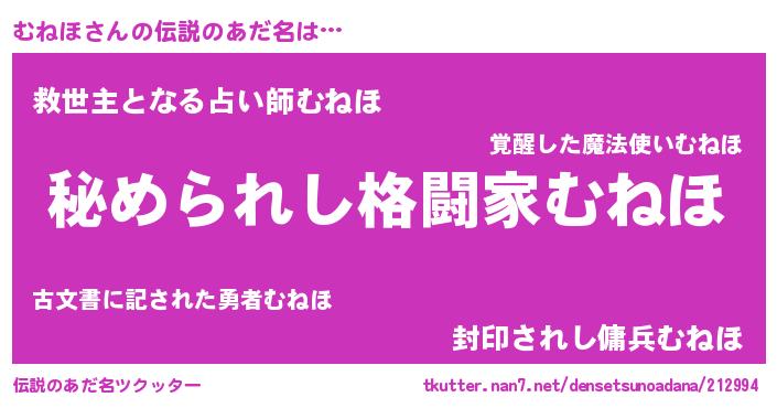 | 意味不明あだ名 | 『むねほフォーエバー』『自称むねほ』 |