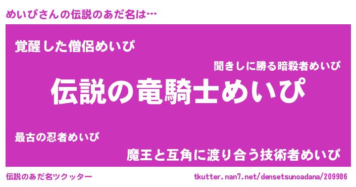 | 意味不明あだ名 | 『ペロリンめいぴ』『自称めいぴ』 |