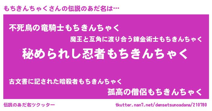 | ファンタジー風あだ名 | 『エターナルモチキンチャクー』 |