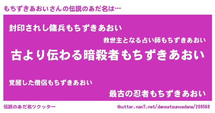 | ヒーロー風カッコイイあだ名 | 『ネオモチズキアオイ』『仮面モチダー』 |