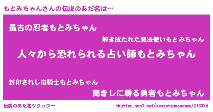 | 男性向けラノベタイトル風あだ名 | 『おまえをオタクにしてやるから、俺をもとみちゃんにしてくれ! 』 |